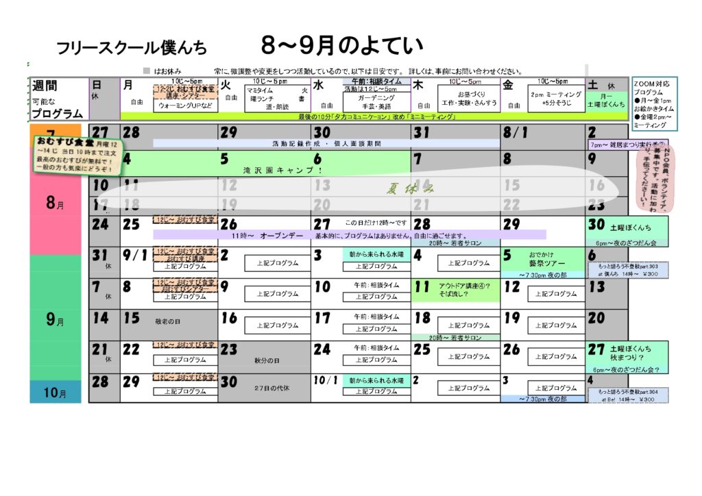 9月の予定